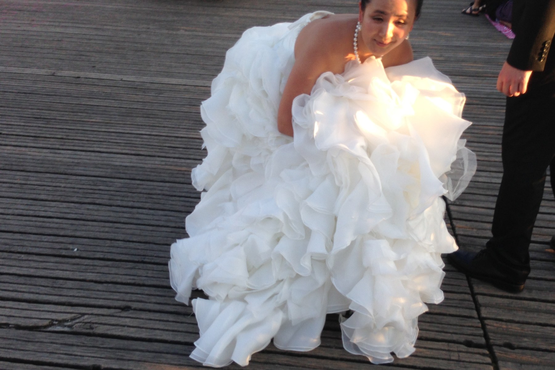 They were kind enough to pause mid-bridge for a few pictures. The graceful bride, seen above gathering her skirts, made me think of swans I’ve recently photographed.