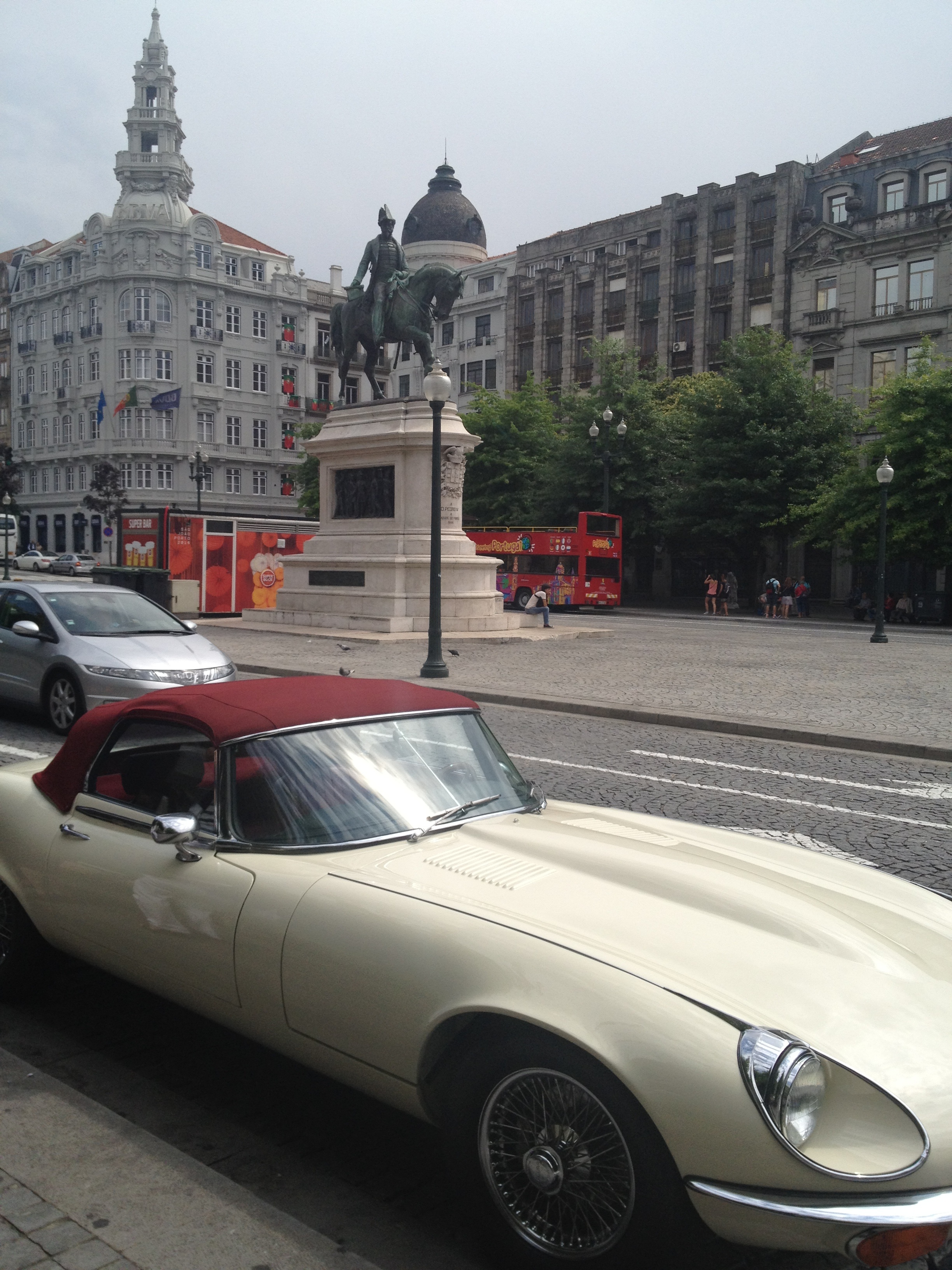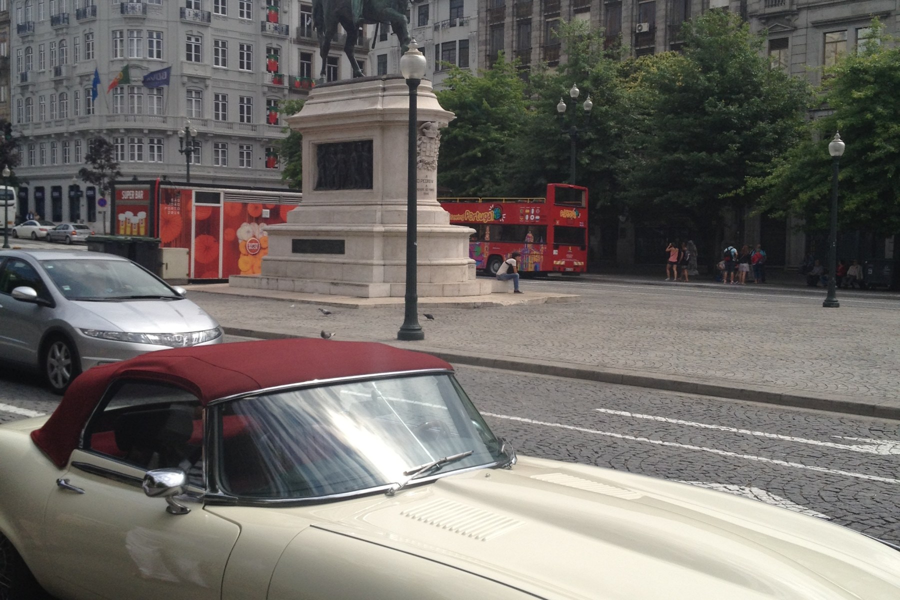 Trying to capture this vintage car framing the statue and lovely buildings in the background, I was at first frustrated that drivers of contemporary vehicles kept entering the shot. What did they think this was, a public road?