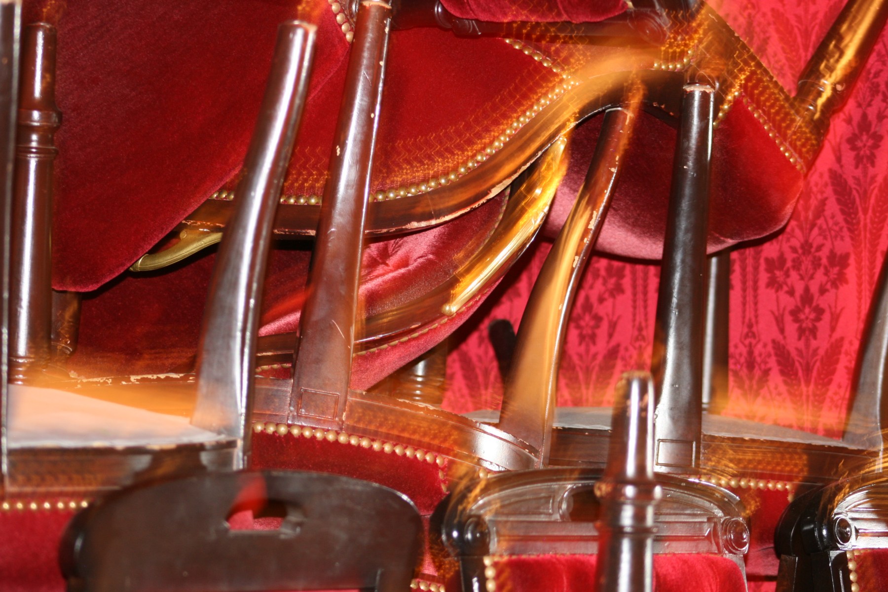 This home to ballet, and beautiful lines, has legs apparently akimbo in this frame. I liked the sense of of the apparent discord, with rightside up and upside down chairs stacked together, in what was actually an organised manner, alongside steps at the back of the box.
