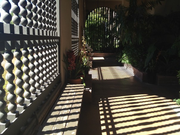 Not being one for straight lines, I found the architecture – and its shadows – particularly appealing just inside the entrance to the Botanical Building in San Diego’s Balboa Park.