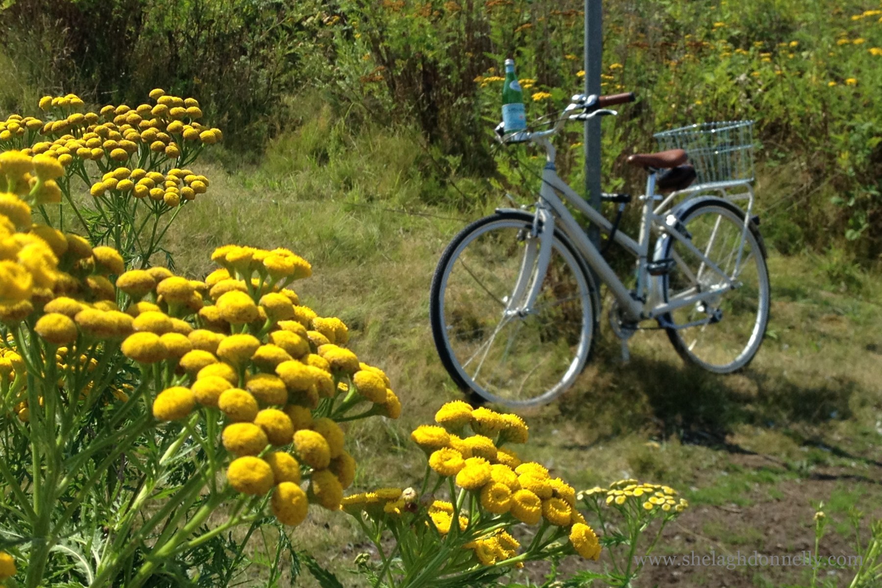 Here, near a popular Vancouver area beach, it was this bike parked by a colourful clump of wildflowers that pulled some of us off our intended walk … and ’round the corner to a treasure trove of wild blackberries. Smaller than the plump and juicy berries cultivated not far away in the Fraser Valley, they were nonetheless sweet – and all the more so for the gentle hum of bees, and the sense of having stumbled, early the other morning, upon a little known secret.