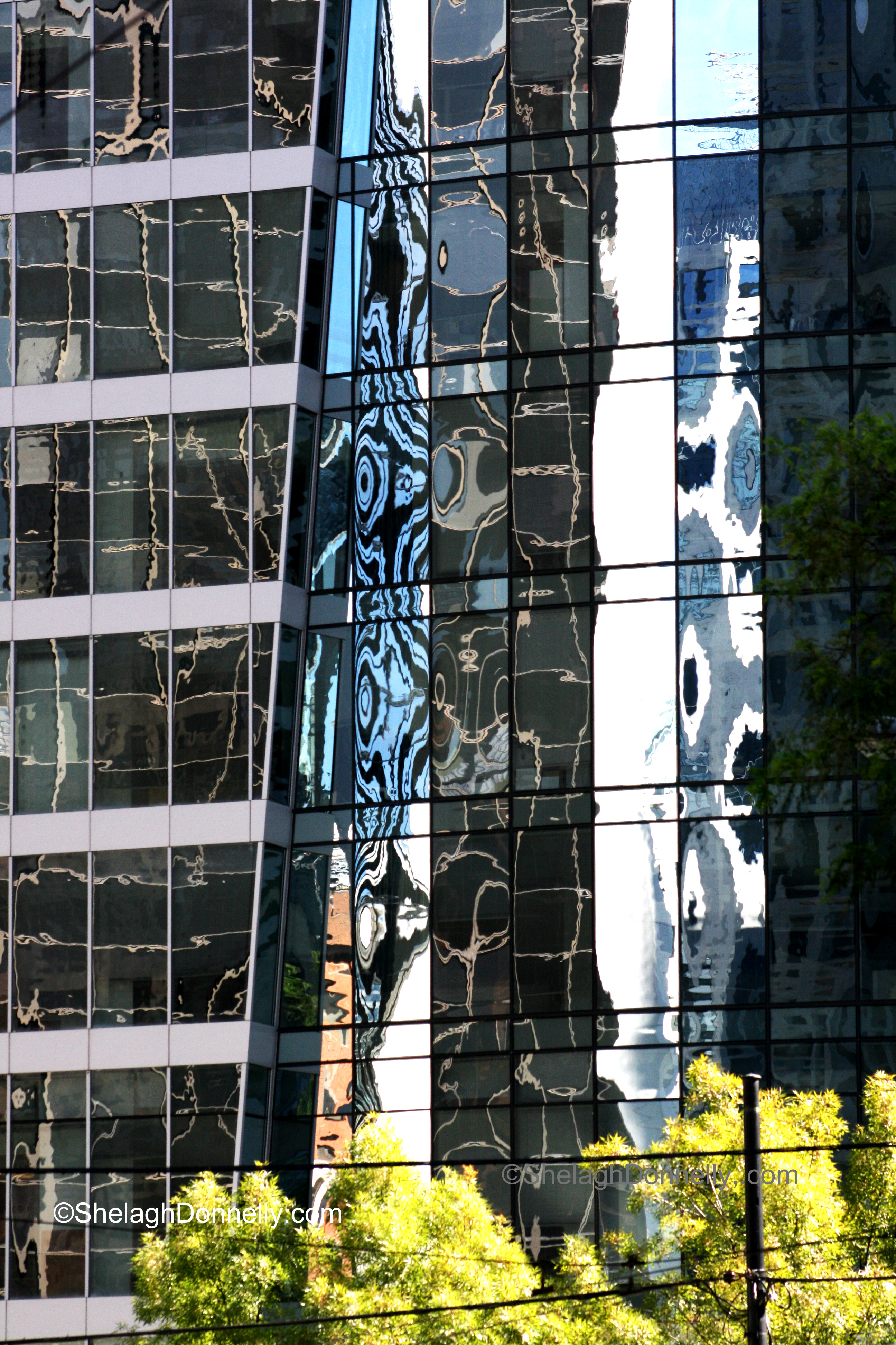 Lately I’ve brought you images ranging from a totem pole near Lions Bay to the clock tower of an older building in Montreal. Today, I’m relying on modern Vancouver to bring you another take on reflective capacities. Rather than a shop window this time, here we have one of the tall glass buildings that’s typical of downtown Vancouver.