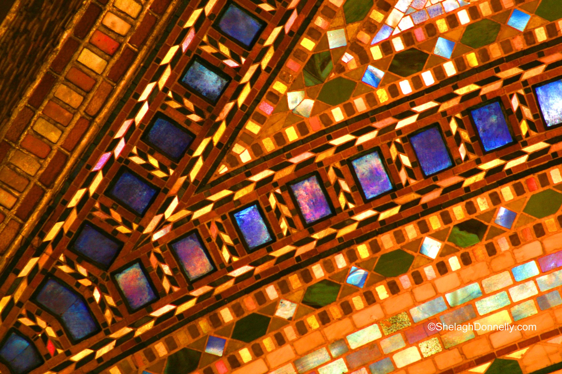 With roughly two million square feet of space, this is the second largest retail store in the US. It’s second only to Macy’s Herald Square store in New York , where I can tell you the ladies’ shoe department is bigger than some suburban department stores. This Marshall Field’s/Macy’s store is not, however, a monolithic big box . It has a number of atriums and nothing less than a magnificent glass ceiling by Tiffany & Co. It’s a wee corner of that ceiling you see in the photo above.