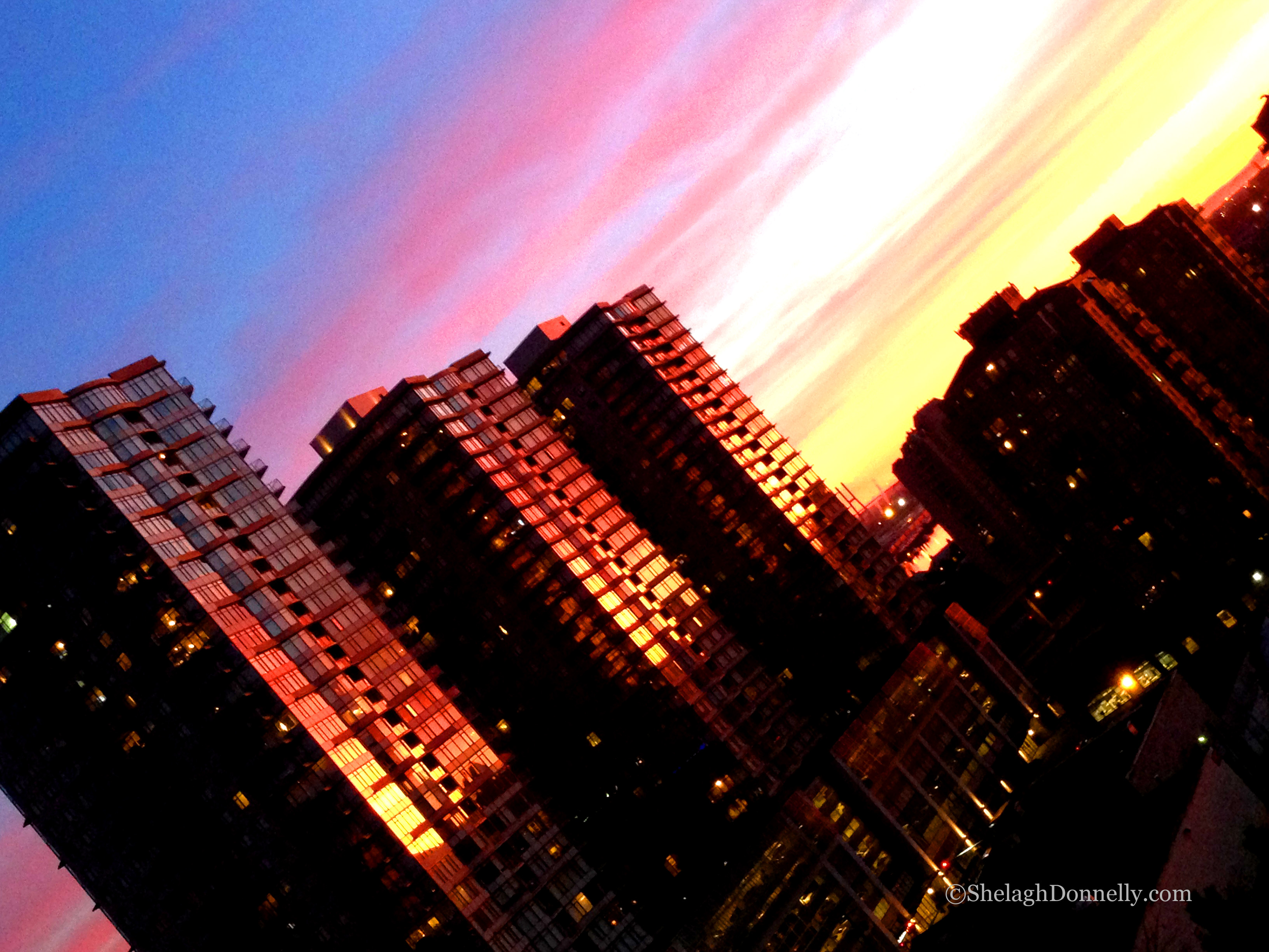 One advantage to attending an evening meeting earlier this week? The painted skies that shifted from these gorgeous pastels to first a blood orange and, ultimately, an almost indigo  blue – but by that time, of course, we were in our meeting room and business was well underway. At this point, though, it was almost as if ribbons of colour were being whipped across the skies.
