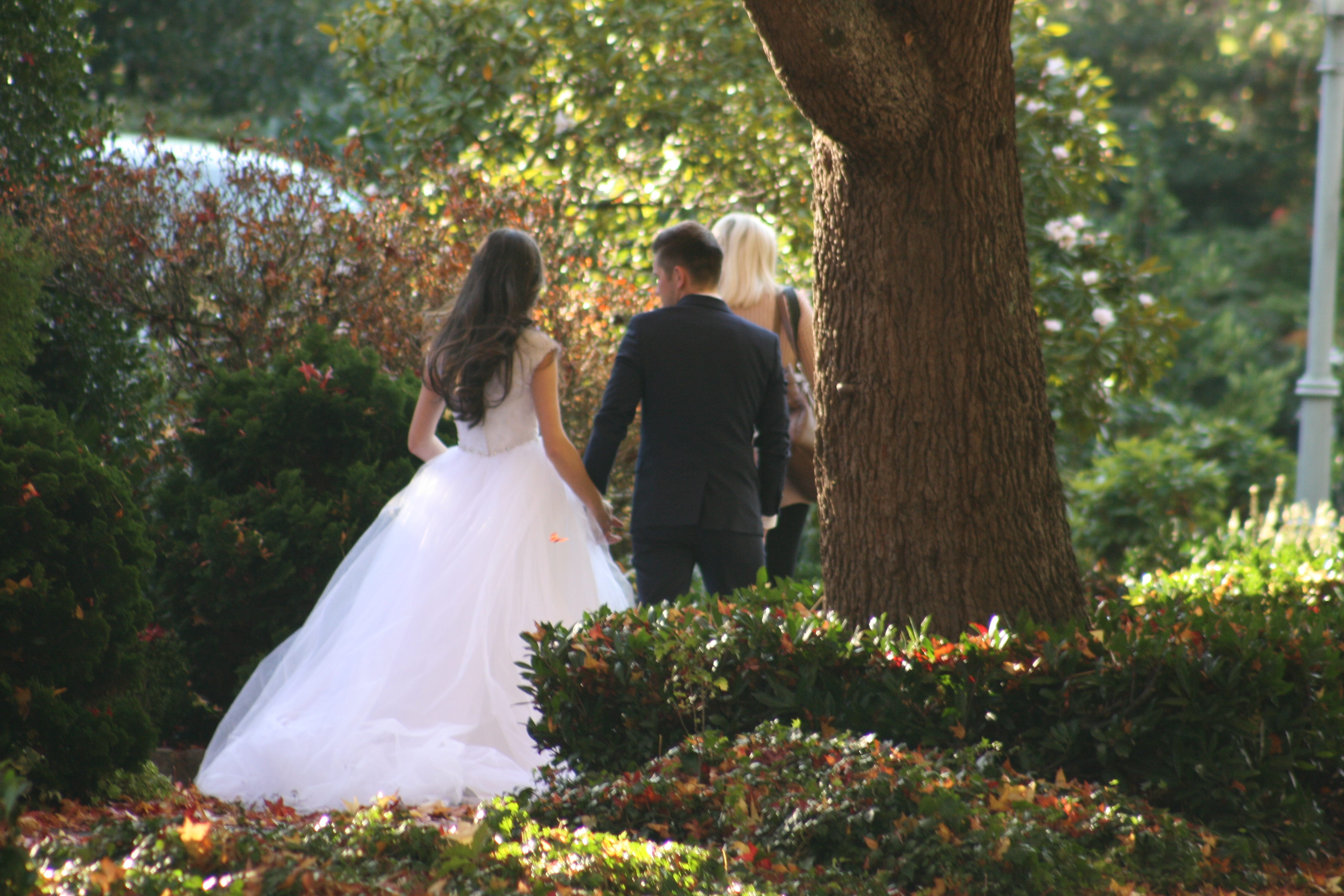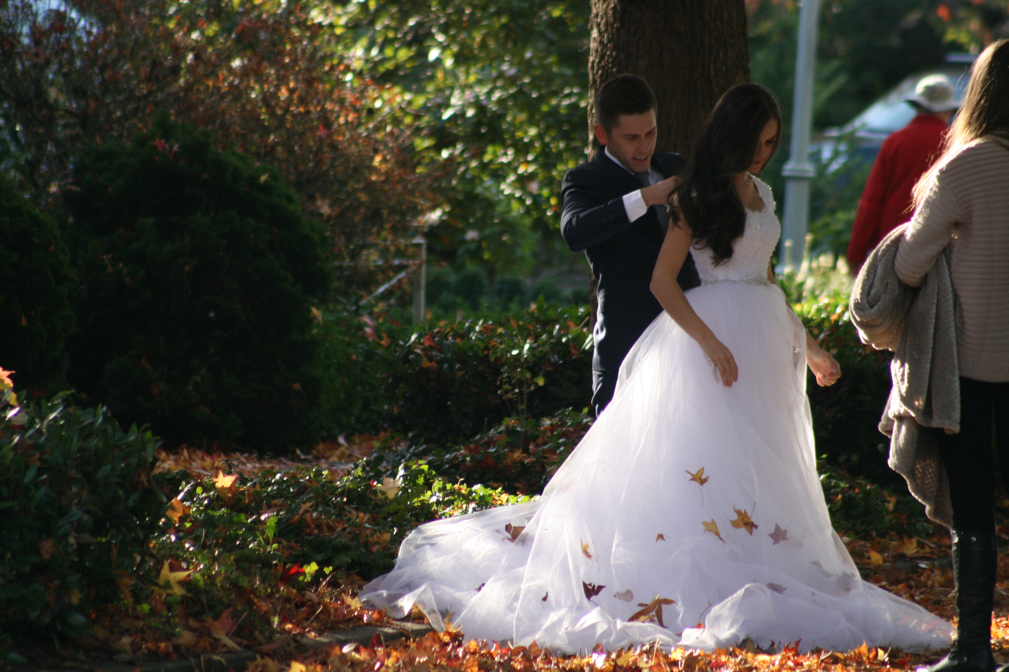 That turned out to be a great call, since it was only after a loop through this lovely neighbourhood that I came upon this much more intimate making of memories, and a very sweet couple with their photographer and a woman who was helping with the shots. There may well have been a number of people in their wedding party, but this young pair captured their special day in a truly romantic fashion, in a gorgeous sun dappled setting.