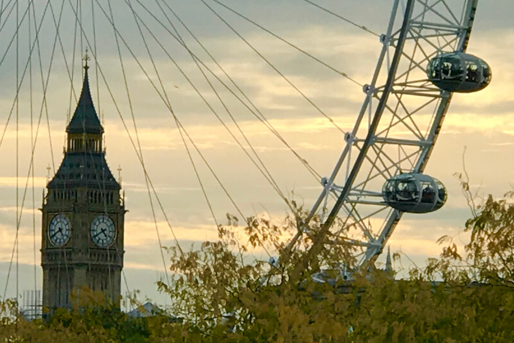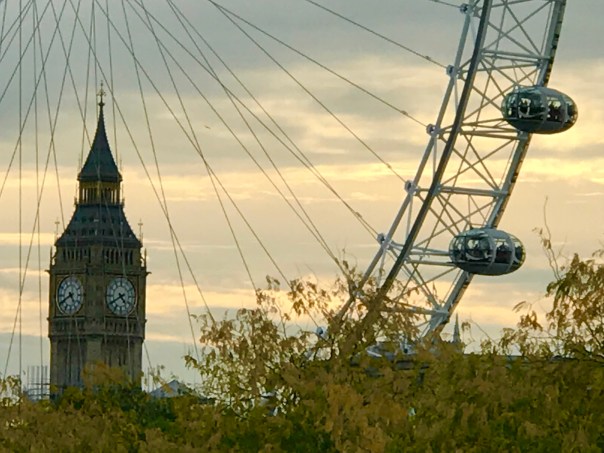… and so we got to enjoy very up close views of not only the London Eye, but also Big Ben and other London landmarks, as we sipped our Pimm’s and soaked up the sunshine. These photos will suggest that it was a cloudy London afternoon, but that’s the city for you; give the weather a minute, and it will change!