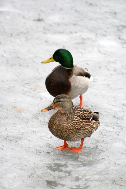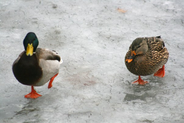 It’s not been cold enough this winter for ponds to freeze over, but these images from Jericho Park last winter always bring a smile to my face. Hopefully they do the same for you – particularly since, in the image below, it would appear that one of this companionable pair is actually perched upon the other!