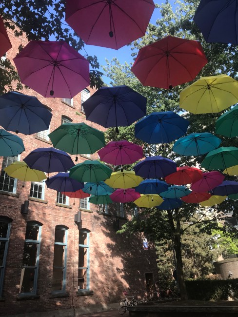 It’s raining umbrellas on this gorgeous Spring afternoon in Vancouver, and locals and visitors alike are taking notice.