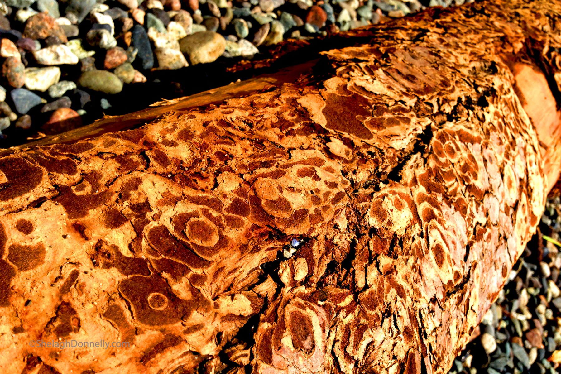 We’re down by the water yet again; this is also from our afternoon at Whytecliffe Park. I love this washed up log with all its whorls, and the contrast with the texture and colours of the surrounding stones.