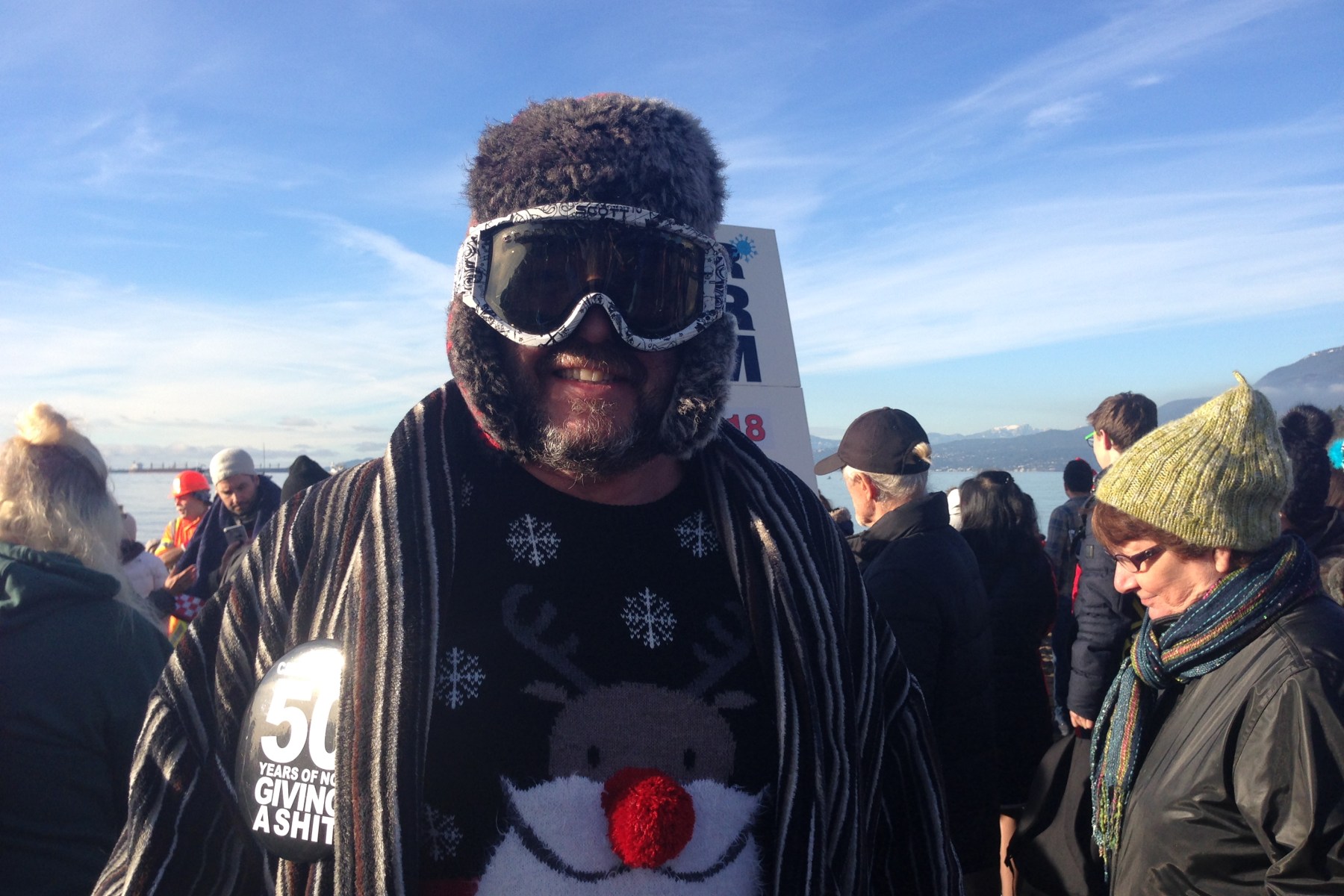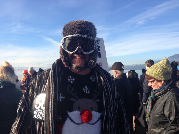 Call we Vancouverites and the people from numerous countries who join us what you like: silly, brave, adventurous, foolhardy … you’d probably be right! You can add fun loving to the list, as you’ll see with these participants who made a rather grand entrance at the beach.