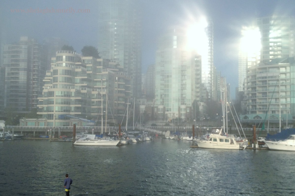 Category: cities, Nature Tags: False Creek, fog, paddle board, photography, Vancouver