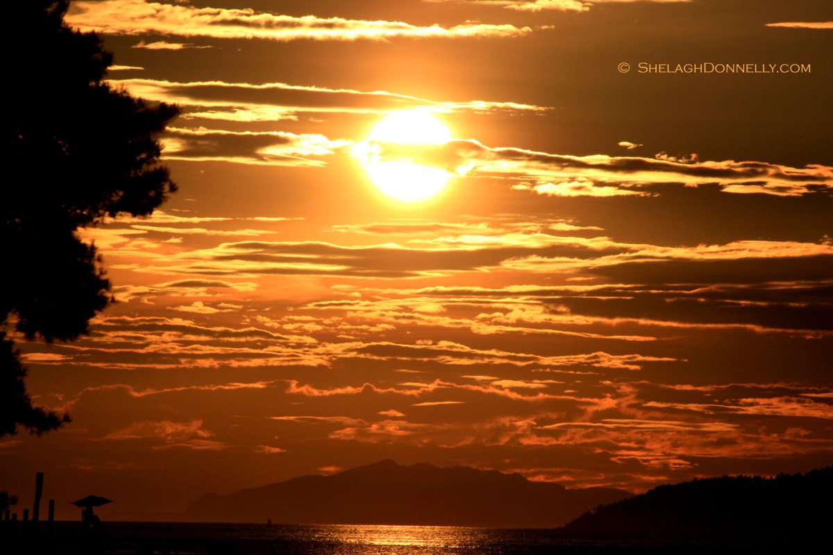 Here are some more images from Thursday evening, when the purplish haze surrounding Vancouver’s North Shore mountains was dominated by golden cuts through the water.