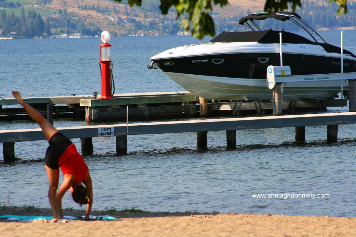 Yoga is a daily element of life for many, yet not everyone is able to incorporate a beach into their routine. Here, during early morning at Kelowna’s Sarsons Beach, this woman had secured a quiet spot before flocks of families…