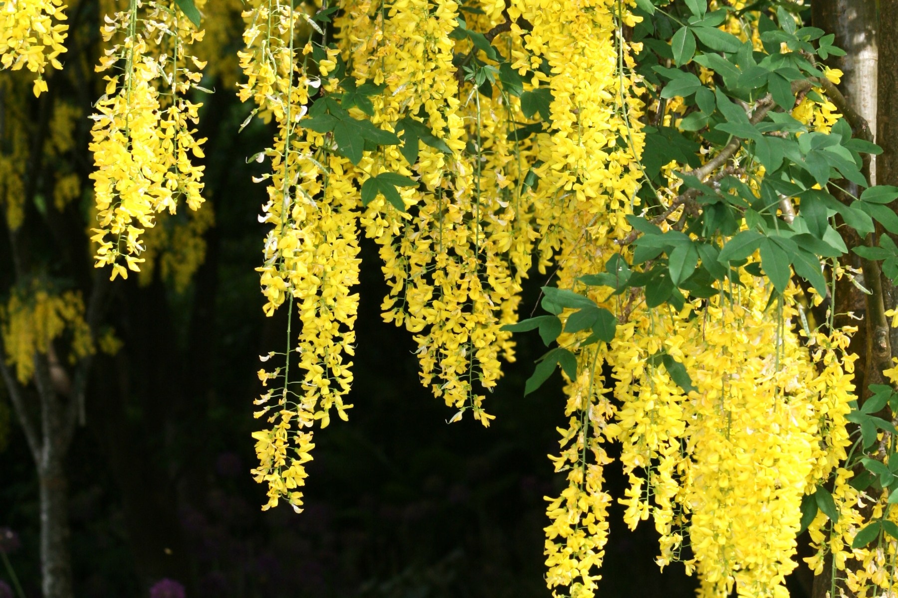 Beneath the laburnum, the walkway is flanked with allium and littered with blossoms that were drifting down even as I was snapping photos.